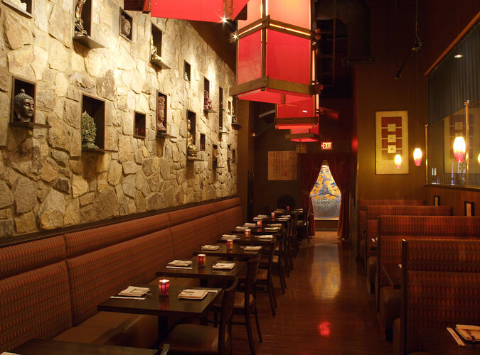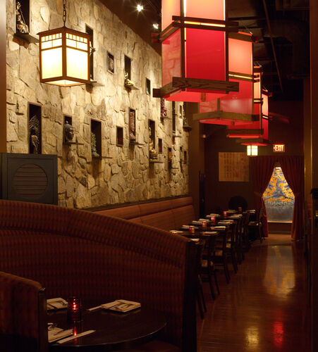 The Team was challenged to blend the spatial requirements of a shopping mall fit-out with the stand-alone upscale environment the Owners were looking to achieve. The design won the 2008 American Society of Interior Designers Silver Design Award. Several different types of materials were used for the restaurant’s finishes including an indoor rock wall featuring a waterfall, a rock wall with candlelit niches, and two indoor pagodas which house a sushi bar and a seating area. The different textures chosen for the interior draperies and the overall usage of warm colors also contribute to the sought after “feng shui” appeal of the eatery. Lighting was critical to the design of Potstickers due to the limited available light which enters the building. Five different types of lighting fixtures were incorporated into the design.